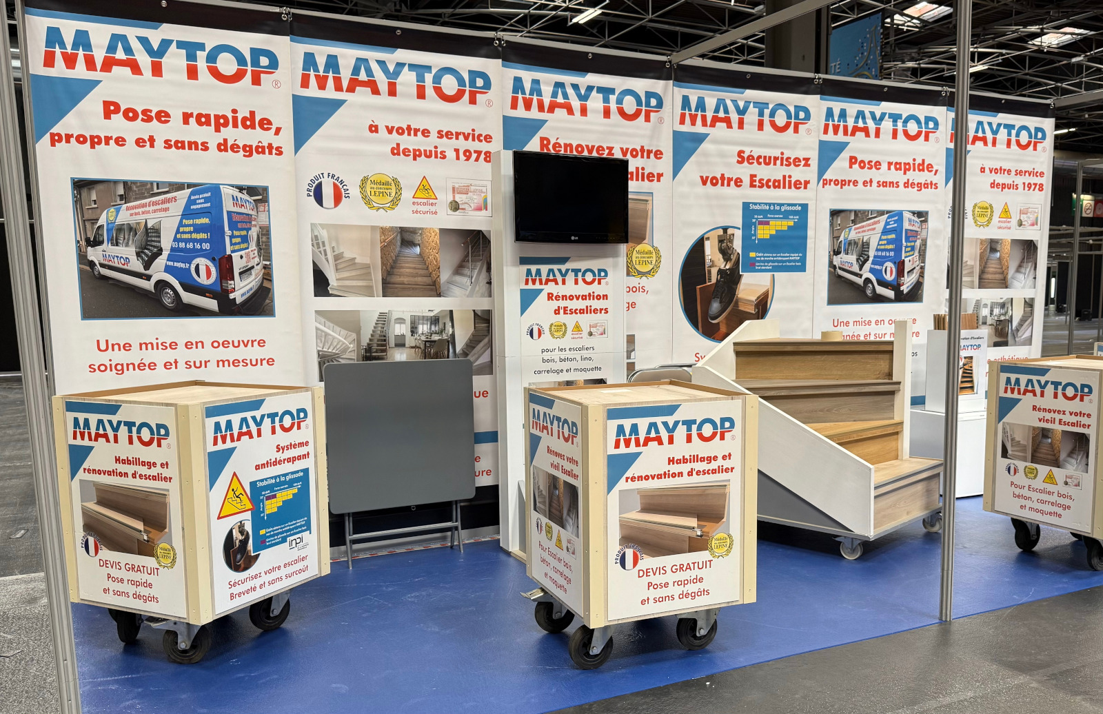 La société ISO 19 expose le système de rénovation d’escaliers MAYTOP à la FOIRE de GRENOBLE du 1er au 11 novembre 2025. Venez nombreux nous voir pour parler de votre projet de rénovation d’escalier. Contact Gilles COULAUD – 06 08 94 56 94.
